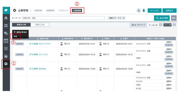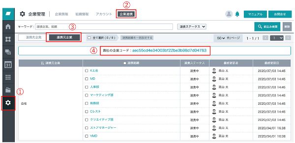 - 「連携元企業」をクリック