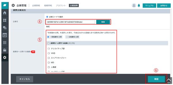 - 「連携企業追加」→「登録」をクリック