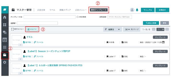 2. 「案件テンプレート」をクリック